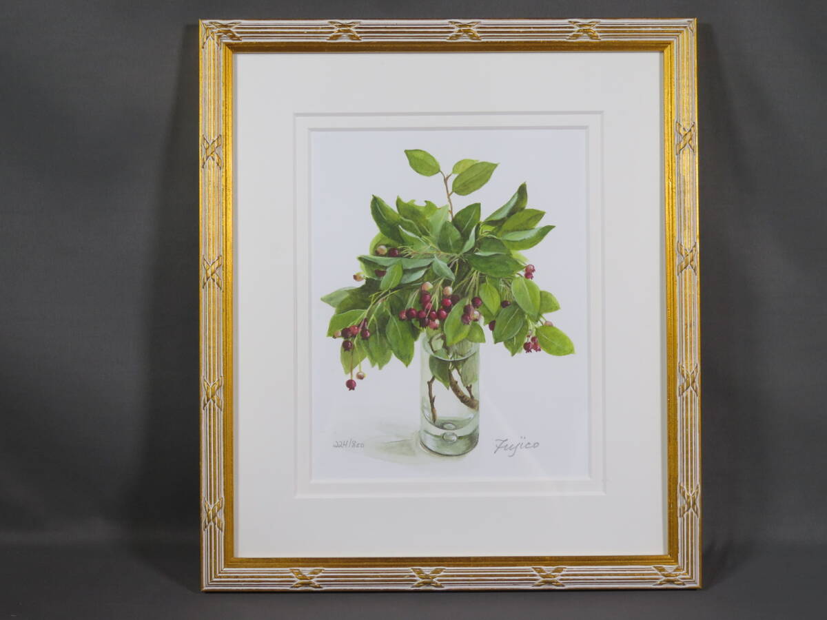 - 【真作保証】橋本不二子 リトグラフ「ジューンベリー」224/800 直筆サイン 額装★版画 水彩画家