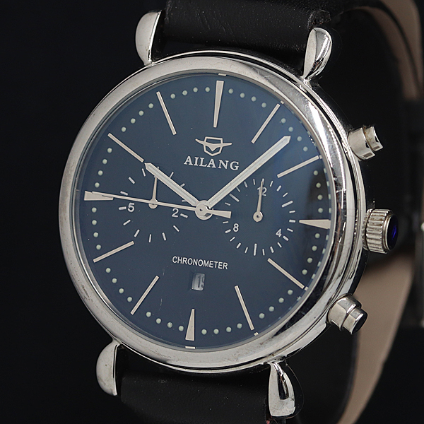 > 稼動 AILANG QZ クロノメーター クロノグラフ 青文字盤 デイト AL-6830G メンズ腕時計 OGH 2000000 NSK