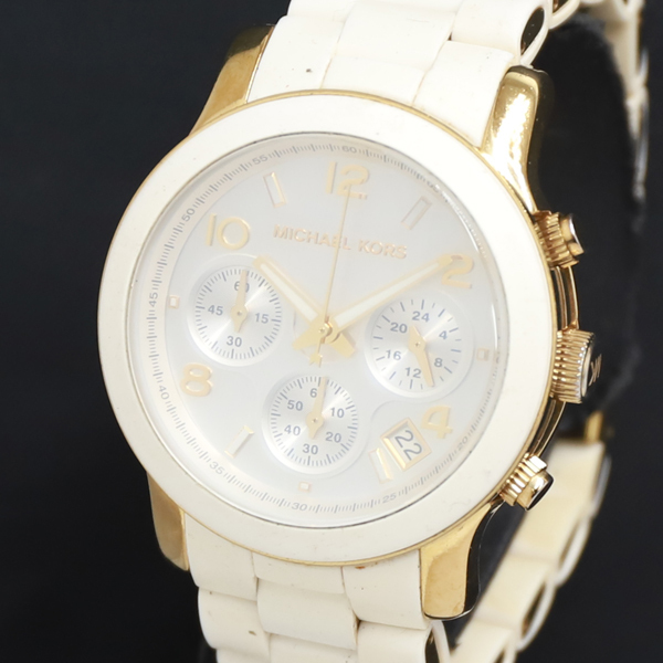 - QZ マイケルコース MK-5145 シルバー文字盤 クロノ デイト レディース腕時計 2000000 NSK KRK