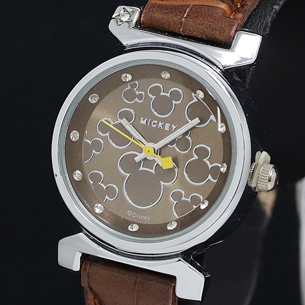 - 稼動 良品 ミッキーマウス QZ ラウンド ブラウン文字盤 レディース腕時計 2000000 NSK MTM
