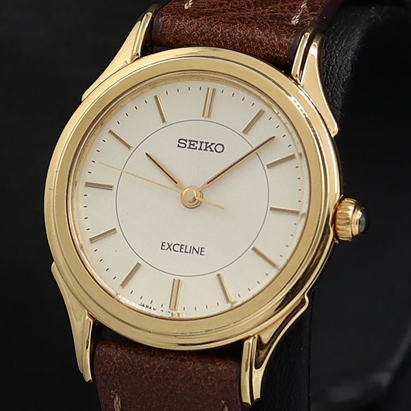 - 稼働 良品 セイコー エクセリーヌ 2J31-0A10 QZ ゴールド文字盤 レディース腕時計 OSW 2000000 NSK