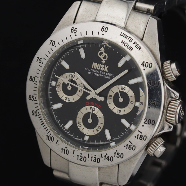- ムスク MM-2142 QZ 黒文字盤 クロノグラフ メンズ腕時計 KRH 2000000 NSK