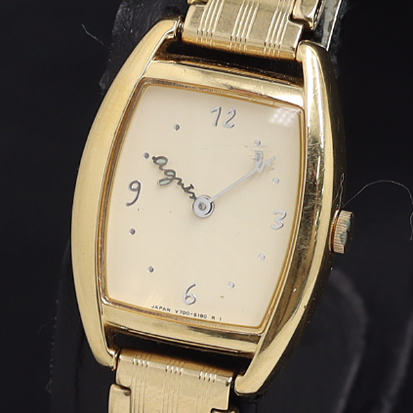 - 稼動 QZ アニエスベー V700-5110 アイボリー文字盤 レディース腕時計 KRK 2000000 NSK