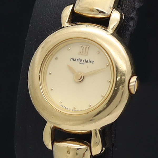 - 稼動 良品 マリクレール QZ バングルウォッチ ラウンド アイボリー文字盤 レディース腕時計 2000000 NSK MTM