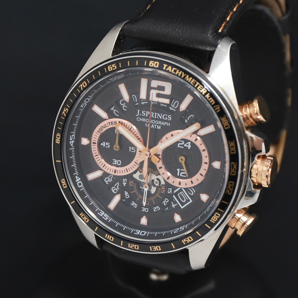 > 稼働 QZ 良品 L.SPRINGS BFJ004 100M 黒文字盤 クロノ デイト メンズ腕時計 2000000 NSK KRK