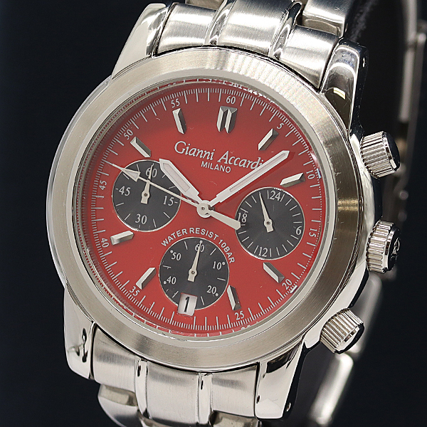 - 保/箱付 ジャンアッカルディ QZ クロノグラフ ボルドー文字盤 デイト メンズ腕時計 2000000 NSK KMR