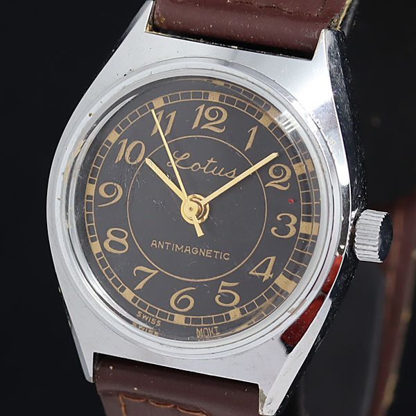 - 稼動 ロータス 手巻き 黒文字盤 メンズ腕時計 OGI 2000000