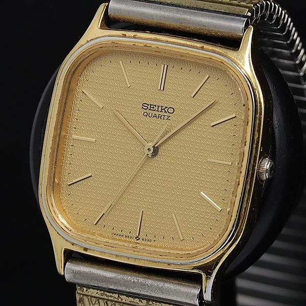 - 稼働 セイコー QZ 9021-5160 ゴールド文字盤 スクエア メンズ腕時計 TCY2000000 NSK
