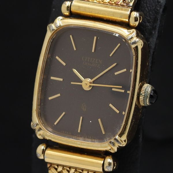 - シチズン 4-103955 スクエア QZ ブラウン文字盤 レディース腕時計 TKD 2000000 NSK