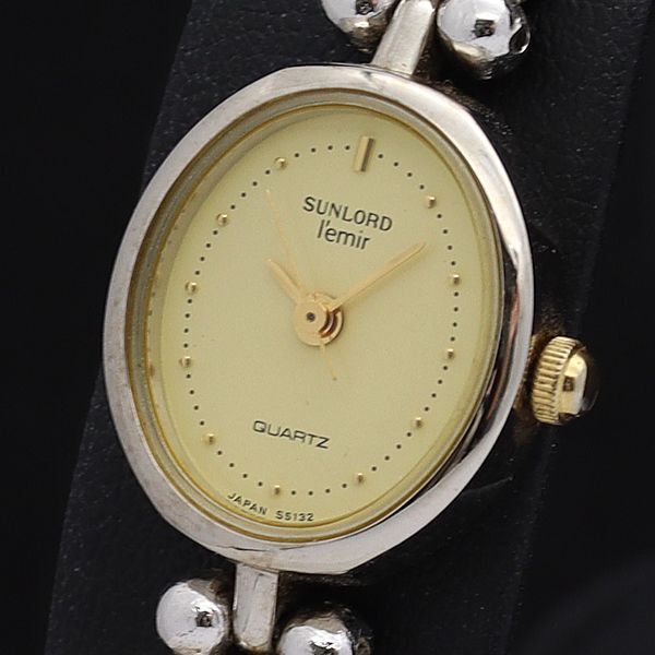 - 稼働 良品 サンロード QZ アイボリー文字盤 オーバル 石付 レディース腕時計 IKE