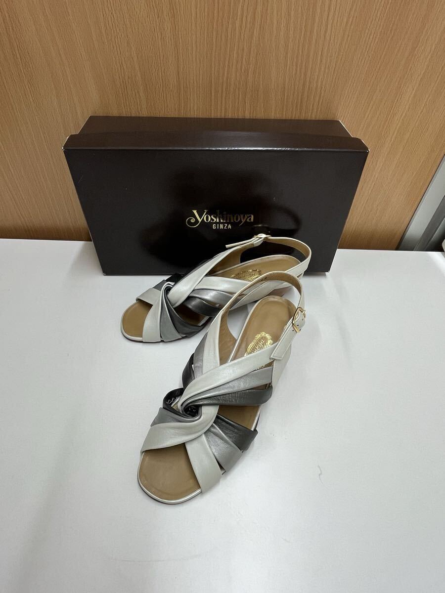 - 銀座 ヨシノヤ レザー クロスストラップ サンダル 23cm 婦人靴 中古品