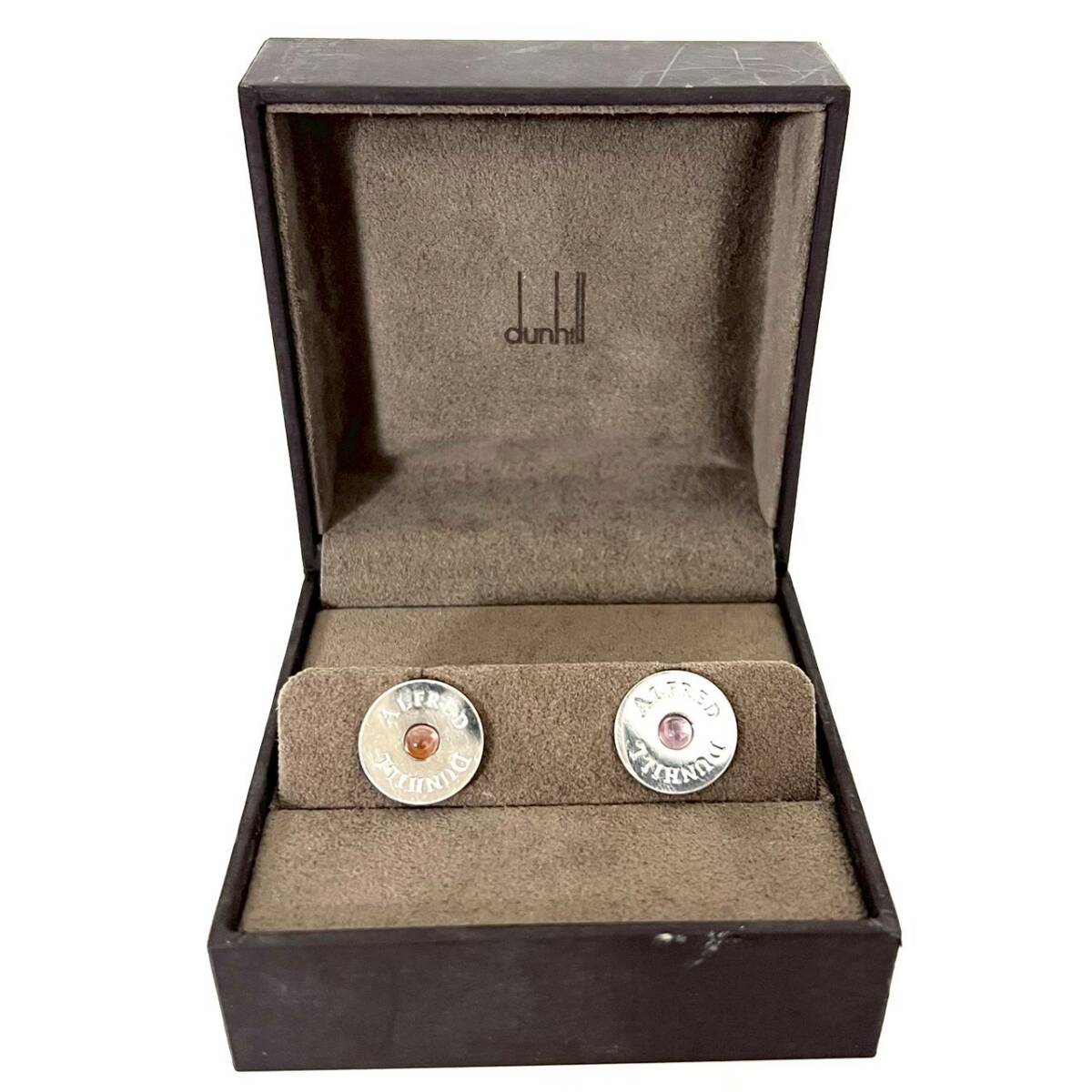 - SD2515 dunhill ダンヒル ロゴ ラウンド カラーストーン オレンジ ピンク カフス カフリンクス カフスボタン SV925 シルバー