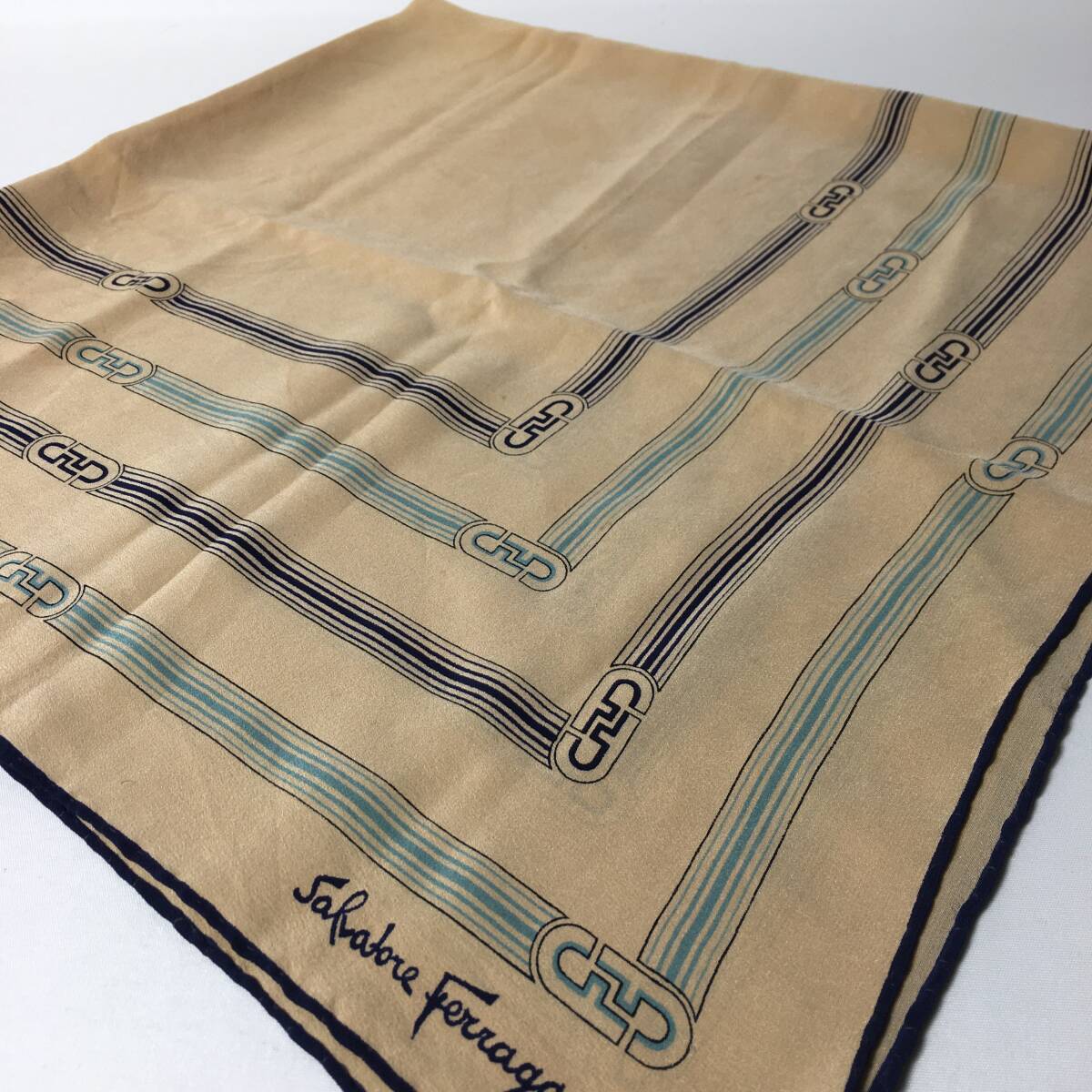 - 78B170|フェラガモ スカーフ シルク100% ネイビー タグあり