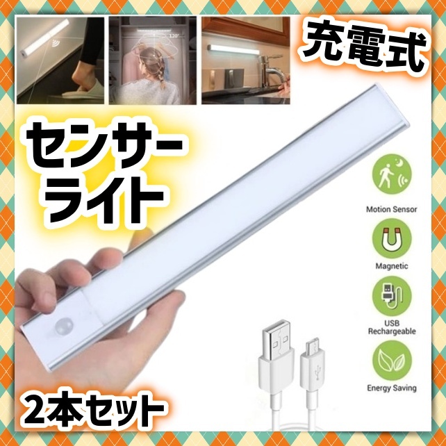 - 薄型 2本セット LED 人感 センサー ライト 充電式 調光 自動 点灯 消灯 手元 足元 DIY 設備 照明器具 トイレ 玄関 廊下 階段 バー型 電気