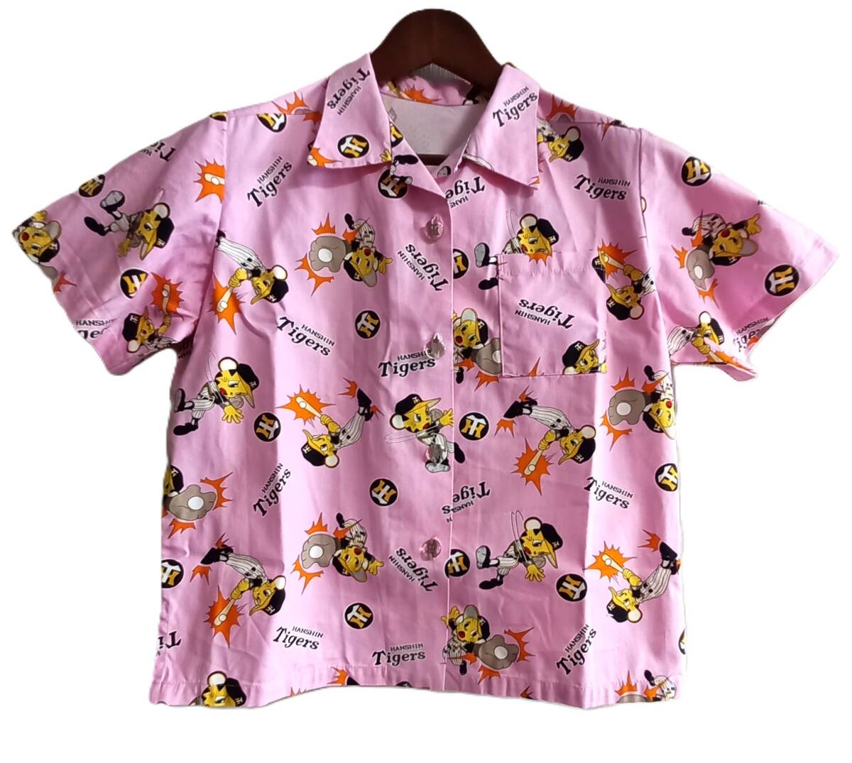 > 新品 男女兼用 S~Mサイズ ハンドメイド トラッキー 総柄 アロハシャツ 阪神タイガース オープンカラー 手作り 開襟シャツ サマーシャツ