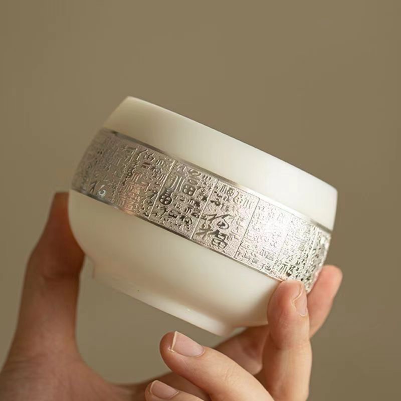 - 人気推薦 /上品な吉祥模様◇ 銀色が美しい 茶杯【百福銀】プレゼントに最適 箱付き