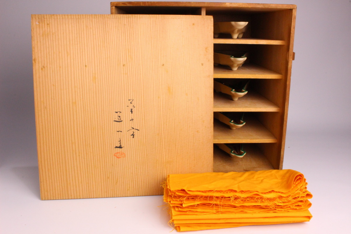 - 「狸庵 RS」 6代 高橋道八 色絵画 変扇面底 皿 10枚「共箱」/ 京焼 和食器 ☆本物保障☆le3ki8x