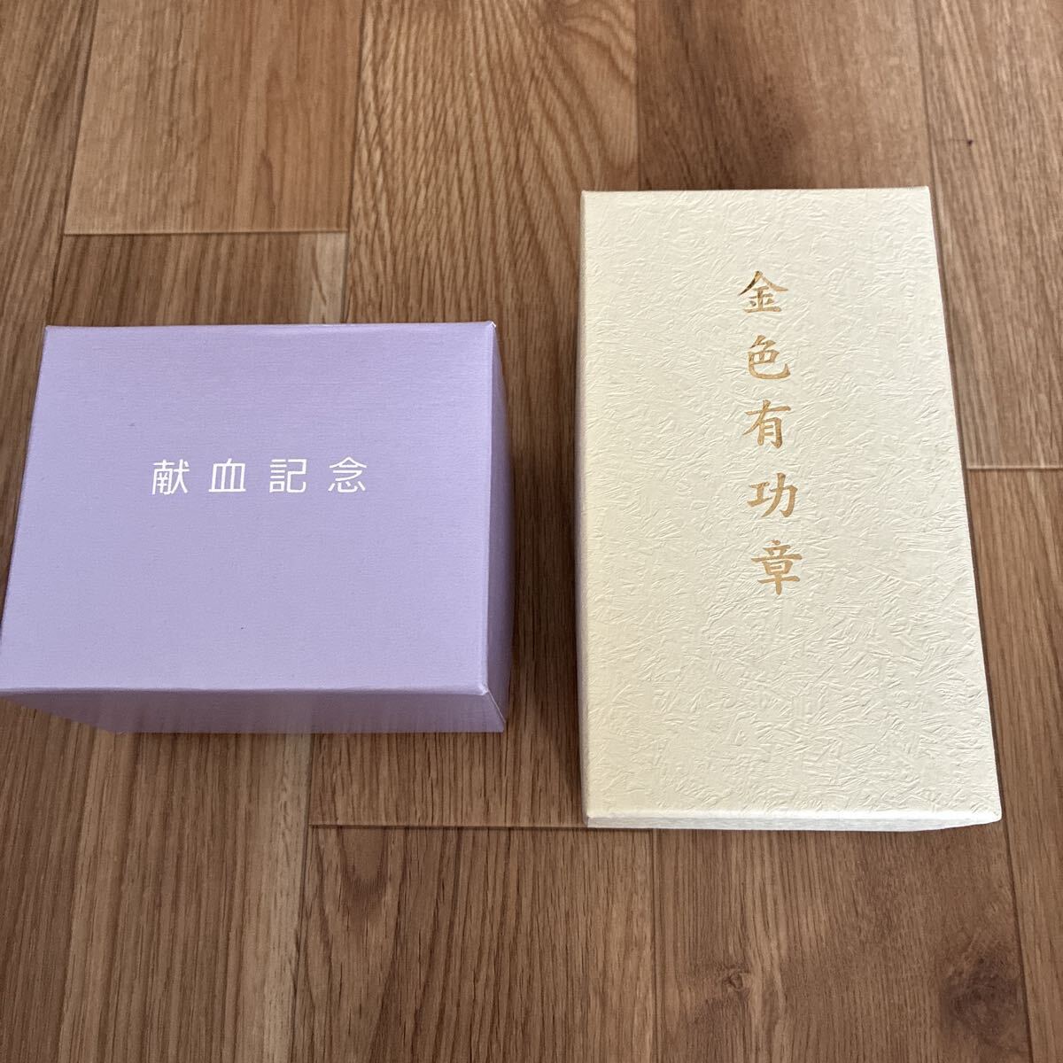 - 献血 記念品 金色有功章 グラス お猪口 2個 セット 未使用 多田美波 日本赤十字 冷酒グラス ぐい呑み