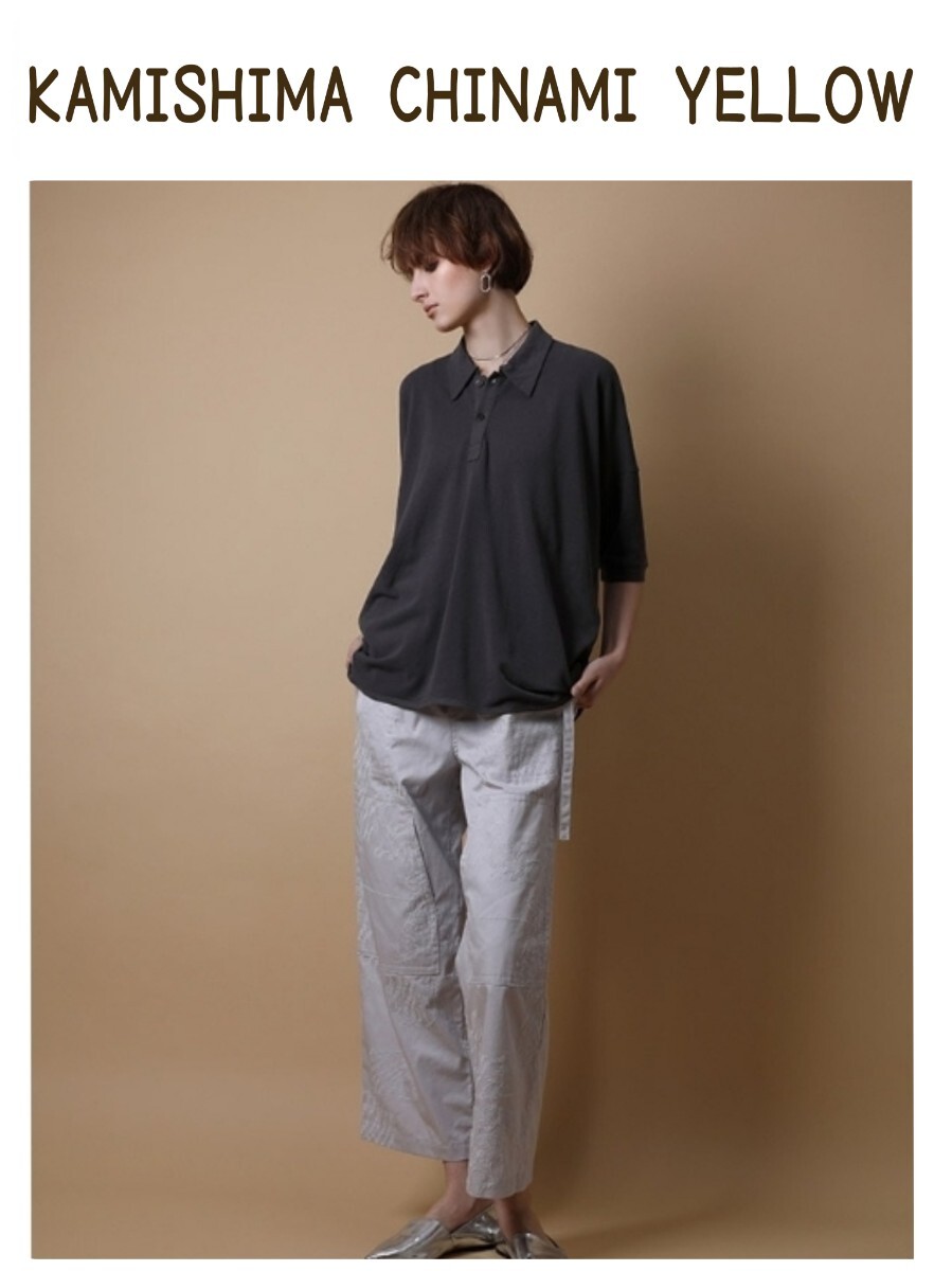 - 送料無料★KAMISHIMA CHINAMI YELLOW 襟付き 五分袖カットソー グレー ポロシャツ