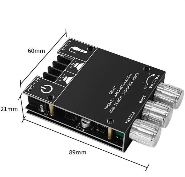 > Bluetooth5レシーバー&AUXinのステレオアンプボード上下カバー 2chx50w 高音低音調整つまみ付き 組み立て式 ★鄭AV