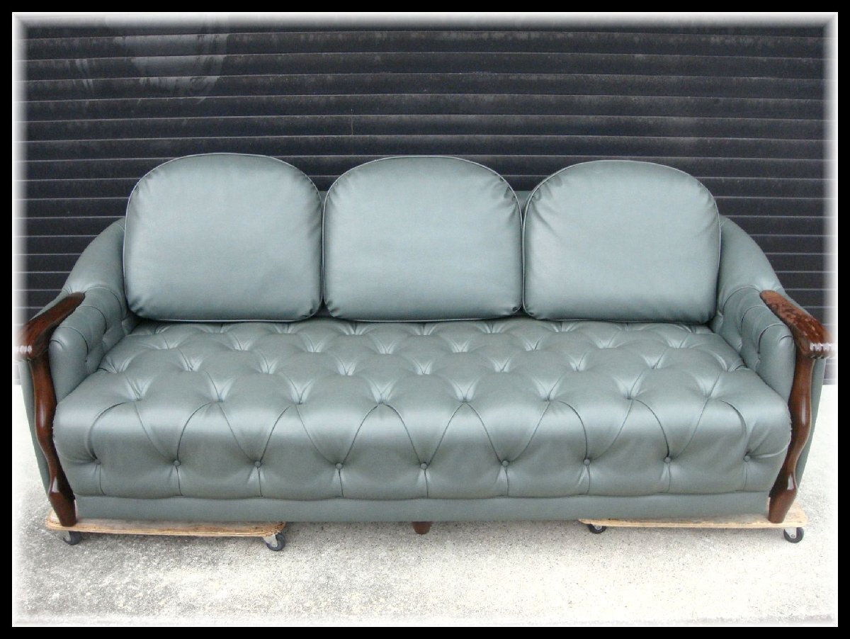 - 9380T ヴィンテージ maruni マルニ木工 ベルサイユ 3人掛 3P 本革ソファ 天然木×グリーン 寸法(約)W189×D88×H78cm アート家財便Eランク
