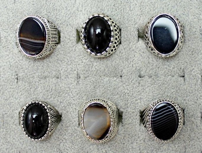 > Qa18-3[21] 天然石 ブラックオニキス指輪 おまとめて6点セット★黒瑪瑙 黒メノウ 黒めのう レディースファッションリング TM-250804M2