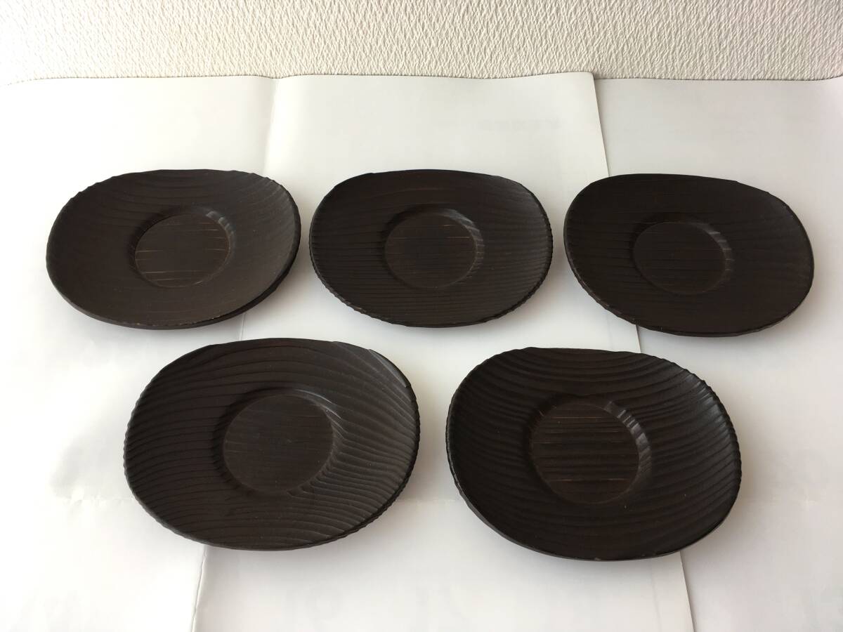 - 茶托 菓子皿 5枚セット 天然木 削り出し 木製 コースター