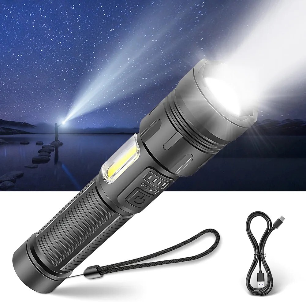 > 【超高輝度1000m照射】多機能 LED懐中電灯 Type-C充電式 防水 防災 ハンディライト 登山 COB 軍用