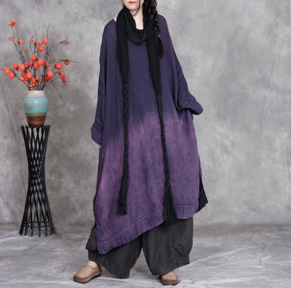- ls 2509 ワンピース 麻100% 洋服ミックス アンティーク風 ロマンファッション ゆったり フリーサイズ 高質 パープル系