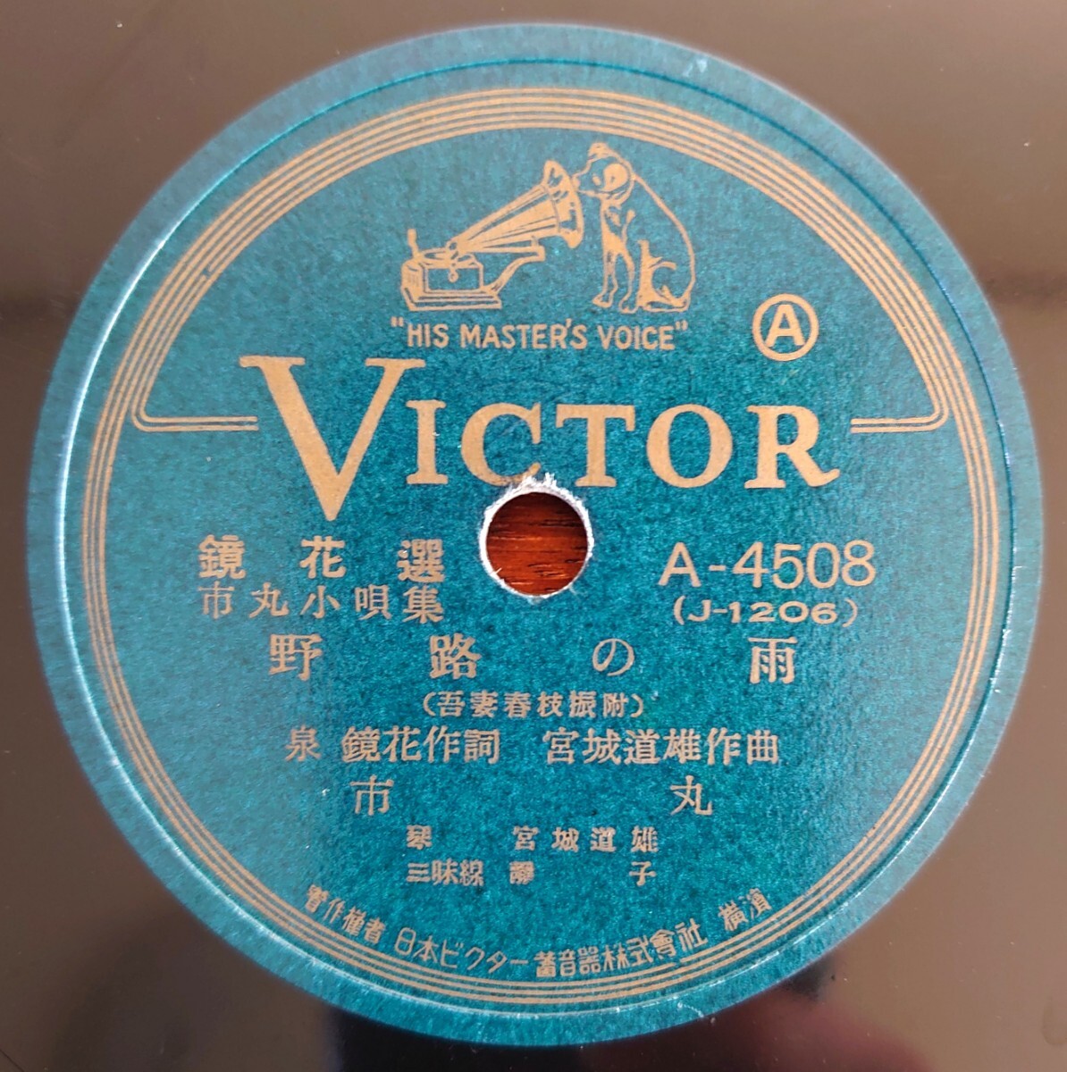- 【SP盤レコード】VICTOR A-4508 鏡花選 市丸小唄集/野路の雨 琴:宮城道雄 三味線:靜子/婦系圖-婦系図 三味線:杵屋佐吉.靜子