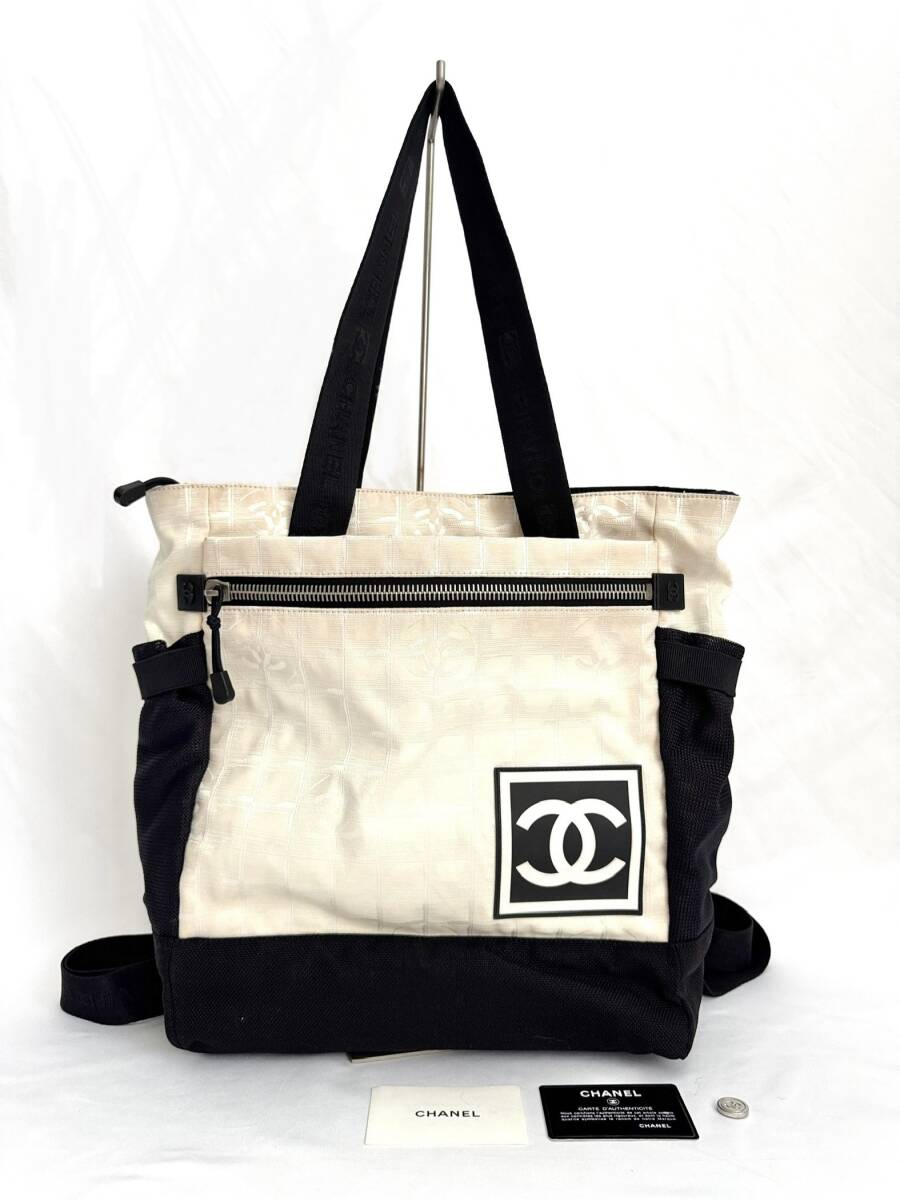 - 7I1417【本物保証】シャネル ニュートラベルライン スポーツ 2way トート バッグ リュックサック ココマーク ブラック ホワイト CHANEL
