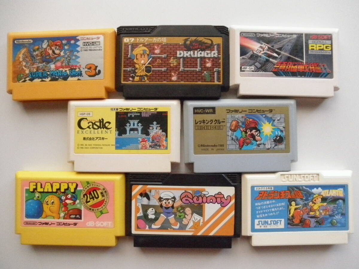 > ●FCソフトセット ステージ、面数多彩8本(アトランチス、フラッピー、クインティ、ガル、レッキング、キャッスル他) 初期起動確認済