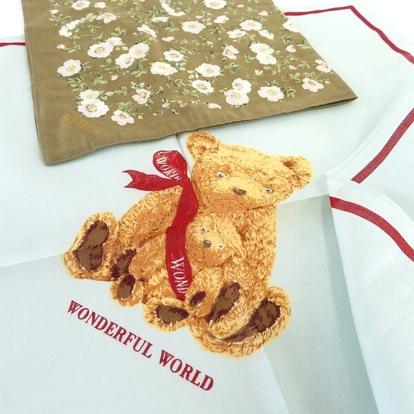 - #ae ピンクハウス PINK HOUSE ワンダフルワールド WONDERFUL WORLD ハンカチ セット カーキ 水色 クマ 花柄 2枚 まとめ 美品 [963102] k01
