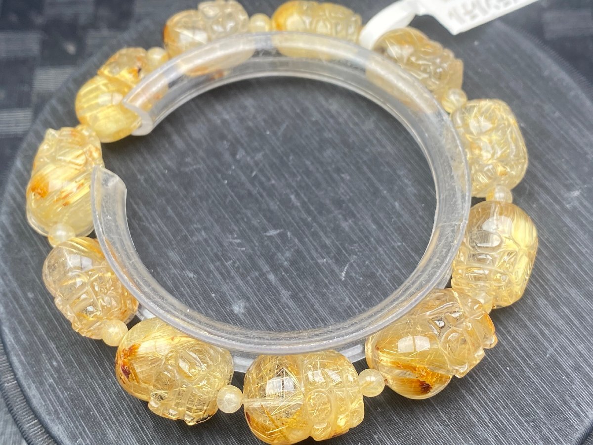 - 即決 0615k369 天然美品★【30A黄金タイチンルチル】★手彫り貔貅 ブレス 15x12x11mm(新品)
