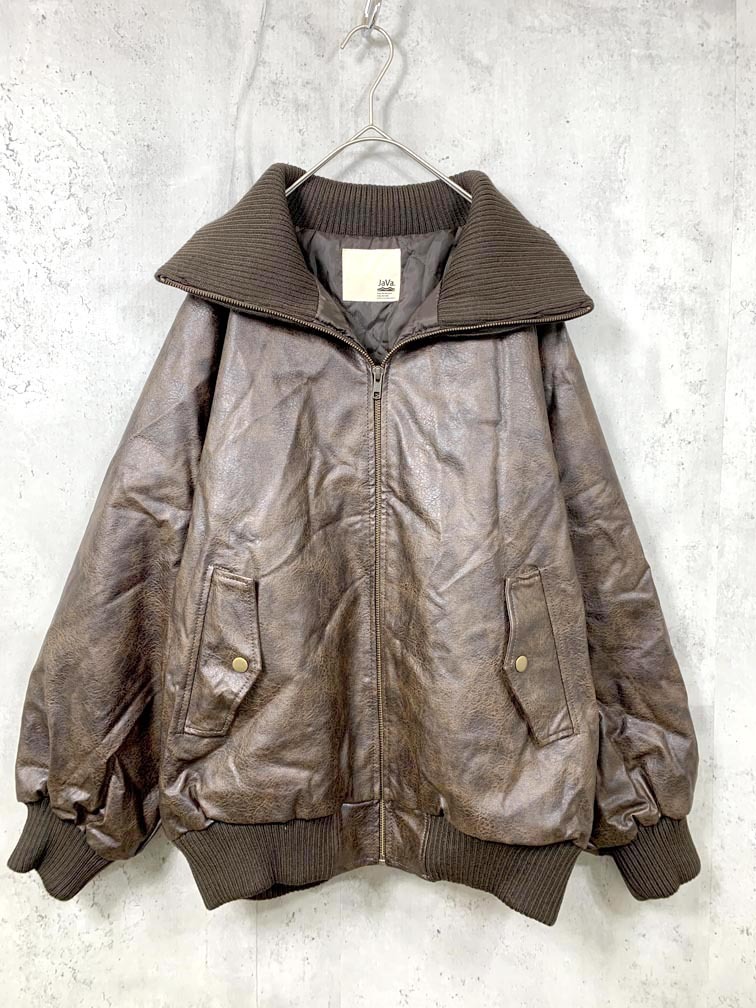 - java ジャバ jv1070055 定価9999円 リブタートル フェイクレザー ジャケット sizeM/茶 ◆■