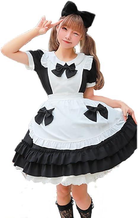 - ハロウィン【Lサイズ 半袖 メイド服】4点セット コスプレ 衣装 フリル 921