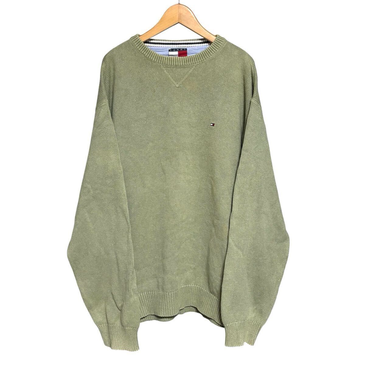 > ※KS TOMMY HILFIGER トミーヒルフィガー 長袖コットンセーター ライトグリーン US古着 コットン100% メンズ サイズXXL