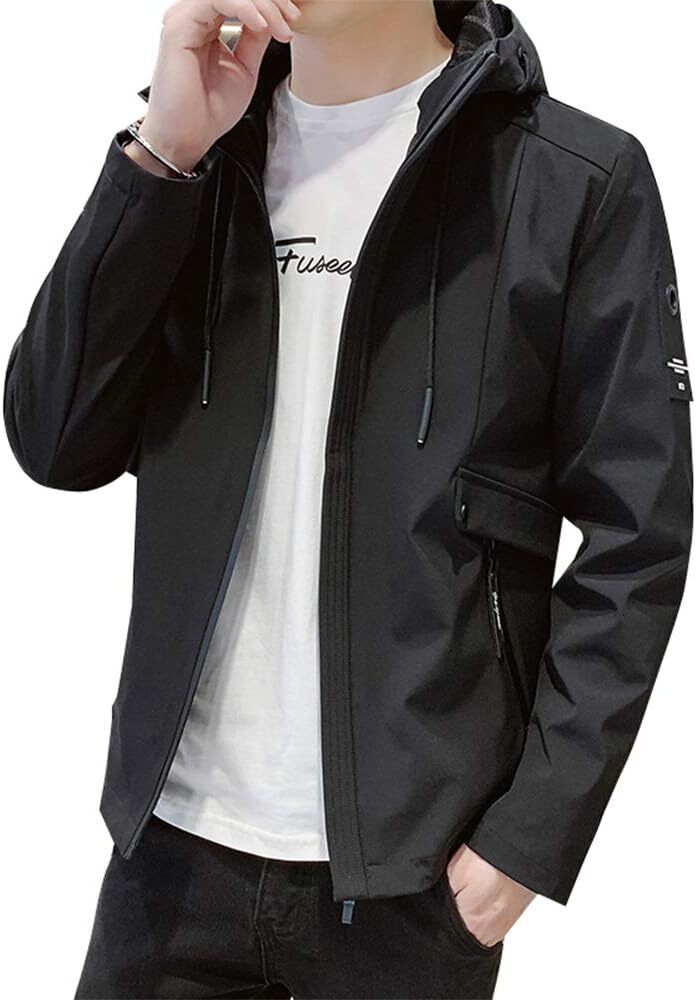 > ジャケット メンズ コート 長袖 無地 暖かい 人気 ウインドブレーカー 春秋 冬用 フード付き アウター カジュアル 防風 軽量 大きいサイズ