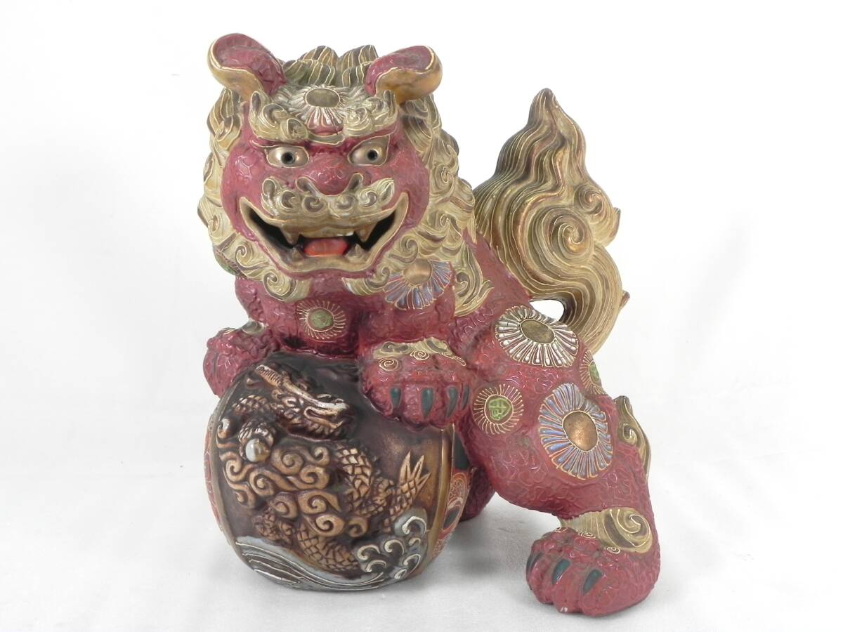 - [R4815]九谷焼 玉獅子 須栄義 龍図玉 高さ約28㎝ 魔除け 縁起物 置物