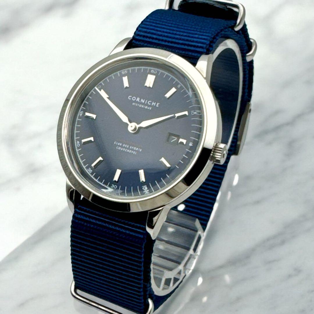 > 【限定モデル】稼働品 CORNICHE WATCH コーニッシュ ヒステリック デイト ナイロンベルト ブルー文字盤 腕時計 メンズウォッチ クオーツ