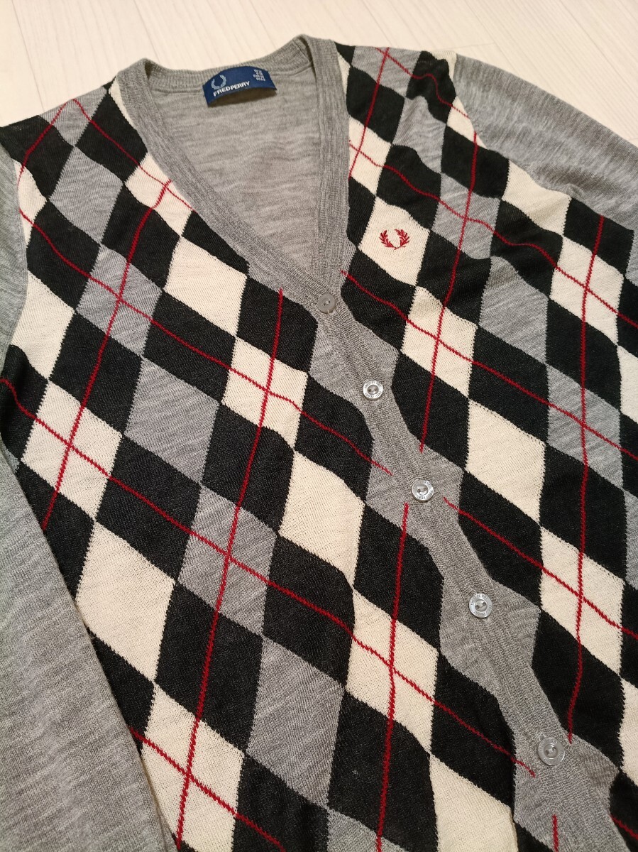 > 【極美品】FRED PERRY アーガイル メリノウール カーディガン US 8サイズ フレッドペリー ニット