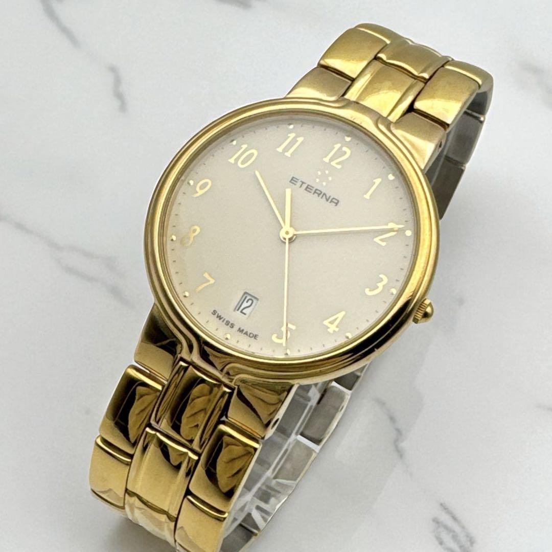 - 稼働品 ETERNA エテルナ デイト カレンダー 腕時計 ゴールド メンズウォッチ クオーツ