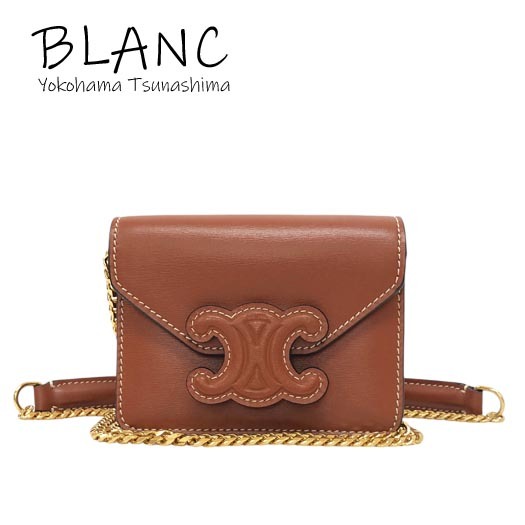 - セリーヌ トリオンフ チェーン付 カードホルダー レザー タン ブラウン 10JD743DPV.04LU CELINE 横浜BLANC