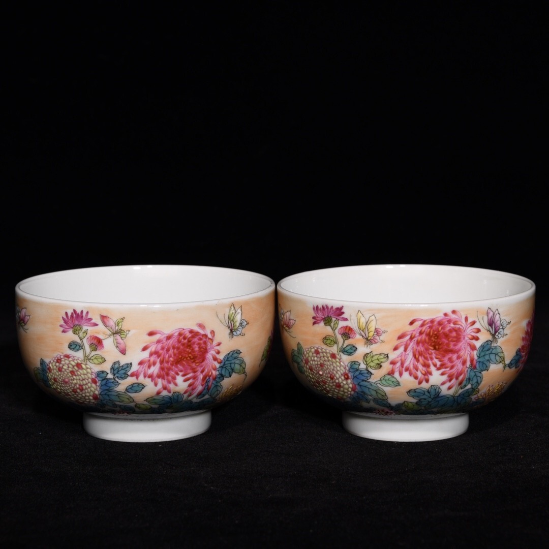 > 永し 清時代 雍正年製 琺瑯彩 花蝶紋杯 一対 古陶磁器 陶芸 皿 中国陶瓷器 唐瓷 置物擺件 古美術品 古賞物 収集 旧家蔵出 中国唐物 A29