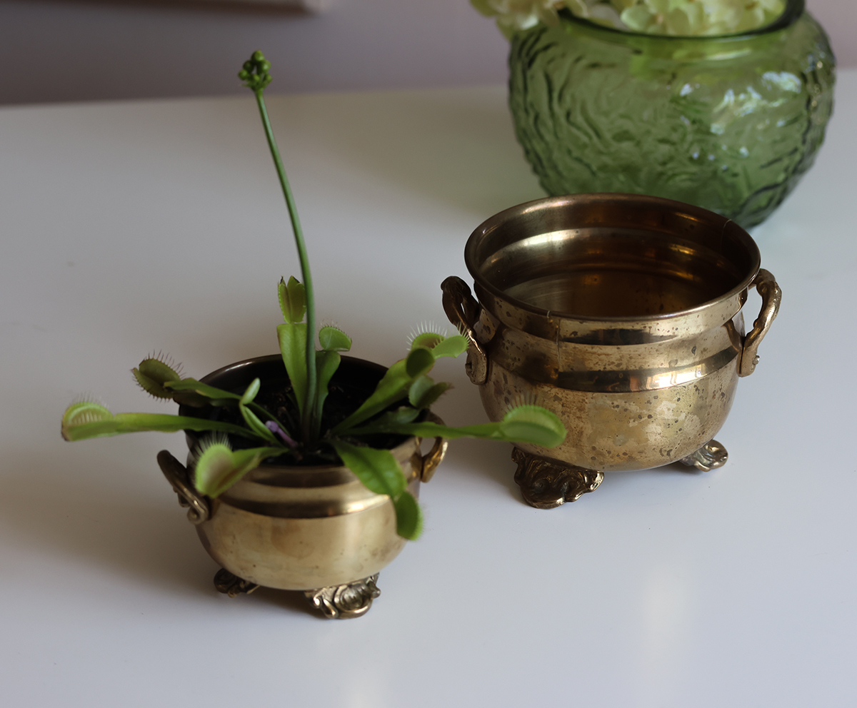 - ビンテージ 真鍮 取っ手付き プランター 鉢 2個セット ボウル ポット 鉢カバー アンティーク調 インテリア