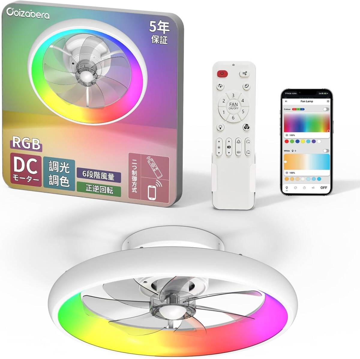 - シーリングファンライト RGB機能付き coizabera 揺らぎ防止 8-12