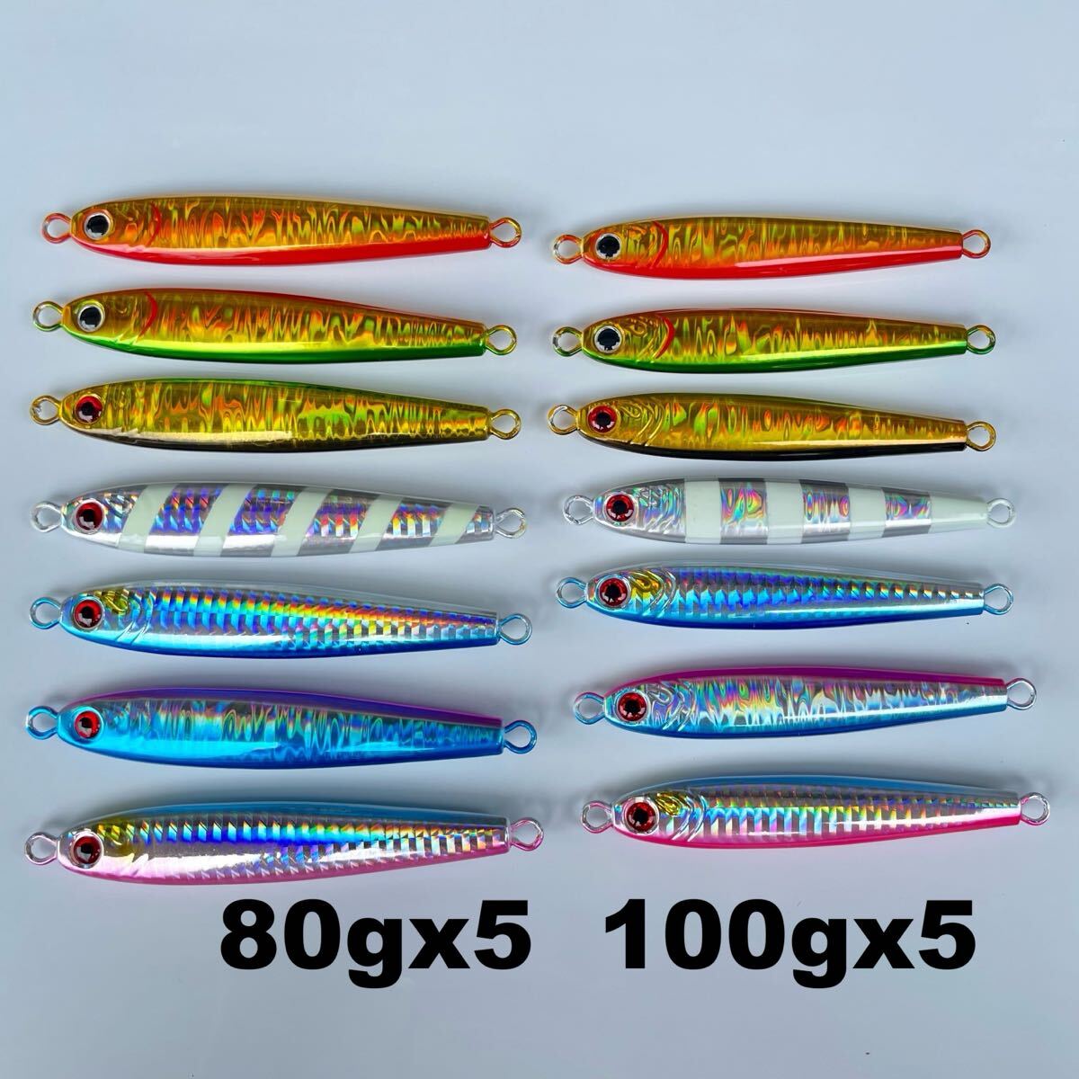 - 80g 5本100g 5本メタルジグ 高比重 TGベイト風 ジギング 青物 タングステン混合 ジギングに 船 TGベイト形状 ルアー