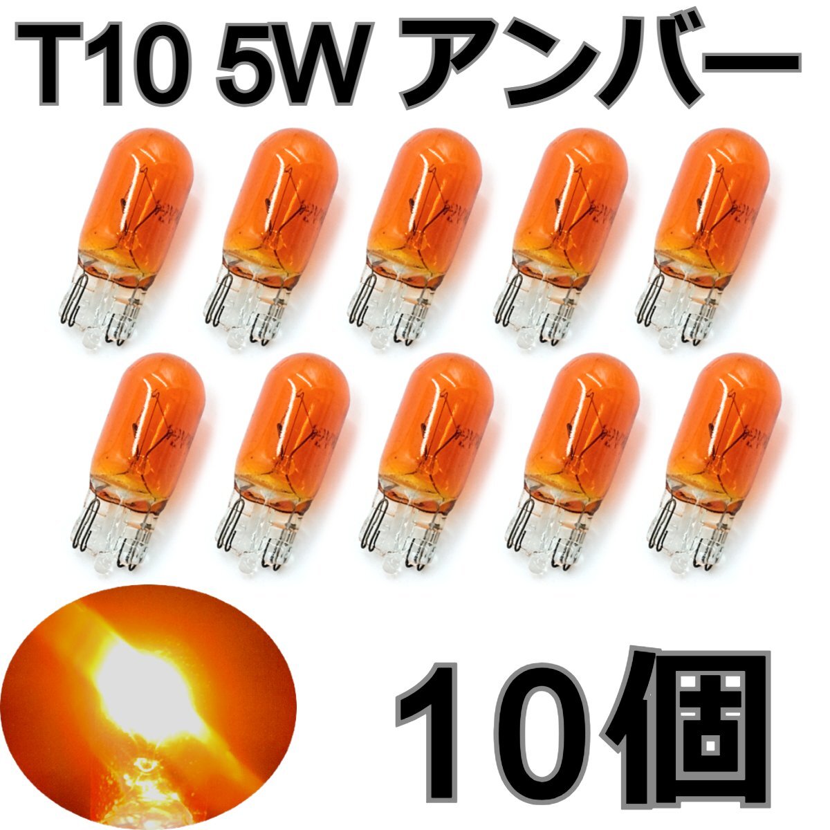 - 5W 10個★T10 アンバー 12V ハロゲンバルブ ウェッジ球 ウィンカー サイドマーカー オレンジ ルーフ 黄 サイドランプ シングル アメ車