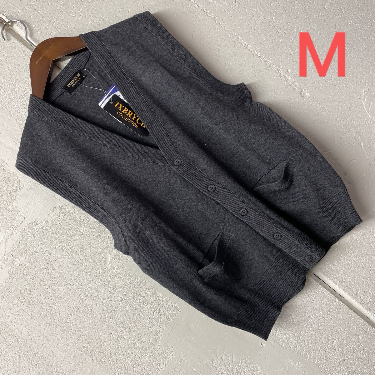 - Mサイズメンズお家で洗えるウール混前ボタンニットベスト チャコールグレー