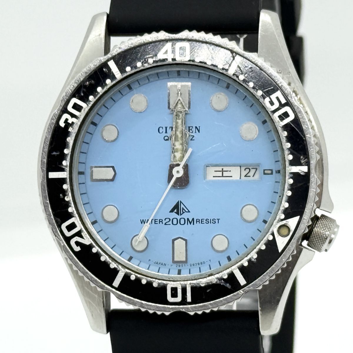 > T7128 希少文字盤 CITIZEN シチズン 時計 ダイバーズ メンズ QZ デイデイト 水色文字盤 2851-262981